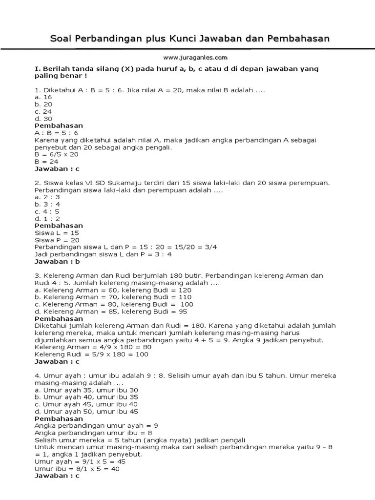 Soal Perbandingan Kelas 6 / Soal Latihan Skala Dan Perbandingan Kls 6 Sd Jawabanku Id - Check spelling or type a new query.